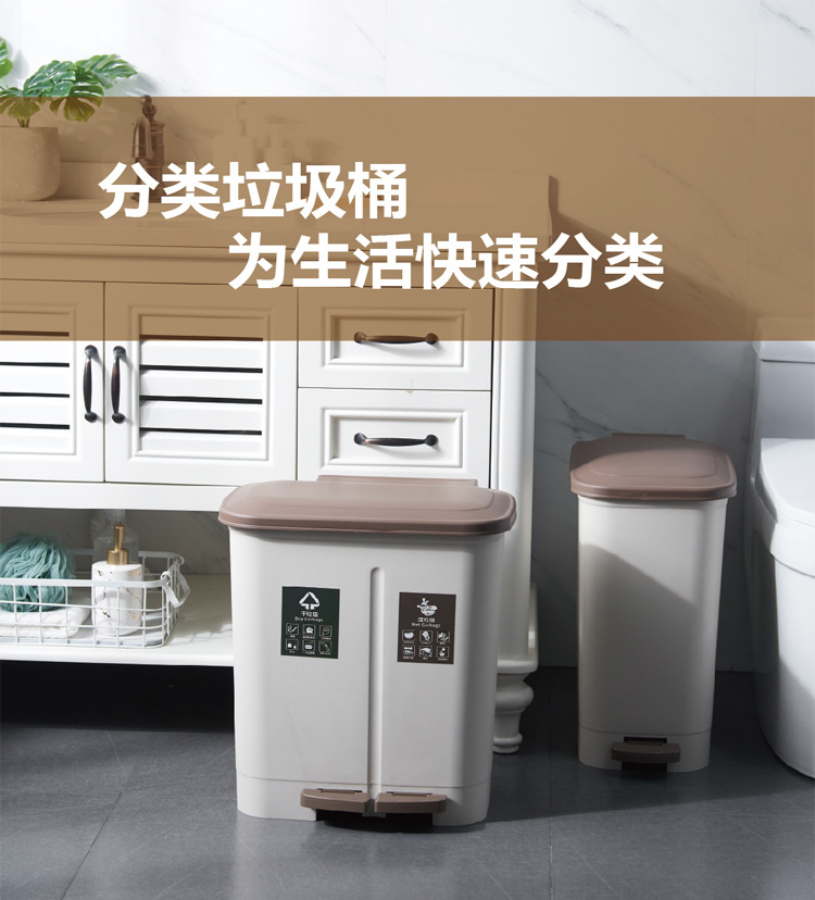 创意 双层分类脚踏家用垃圾桶双盖大号简约干湿分离四分类垃圾桶