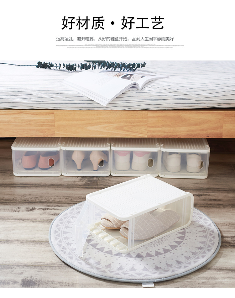 厂家现货批发创意日式塑料鞋盒可叠加防尘加厚鞋盒出口透明收纳盒